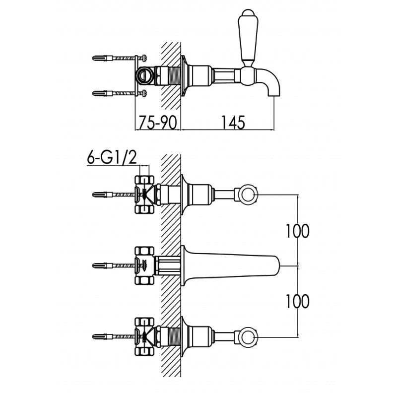 JTP Grosvenor 3-Hole Wall Mounted Basin Mixer Tap Lever Handle - Chrome/White | Thumbnail Image JTP Grosvenor 3-Hole Wall Mounted Basin Mixer Tap Lever Handle - Chrome/White