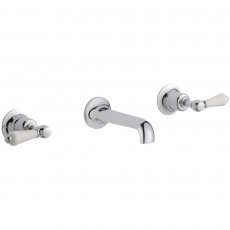 JTP Grosvenor 3-Hole Wall Mounted Basin Mixer Tap Lever Handle - Chrome/White