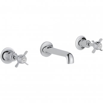JTP Grosvenor 3-Hole Wall Mounted Basin Mixer Tap Pinch Handle - Chrome