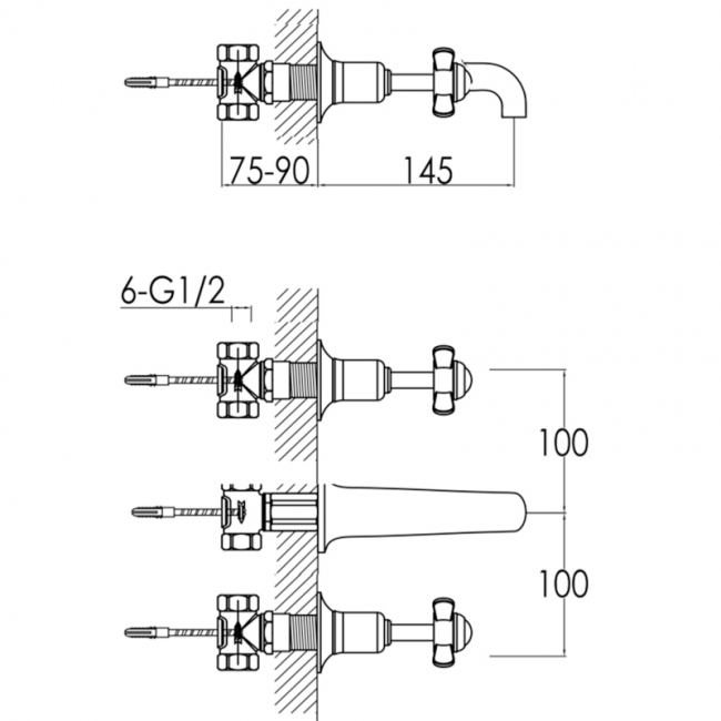 JTP Grosvenor 3-Hole Wall Mounted Basin Mixer Tap Pinch Handle - Nickel | Thumbnail Image JTP Grosvenor 3-Hole Wall Mounted Basin Mixer Tap Pinch Handle - Nickel
