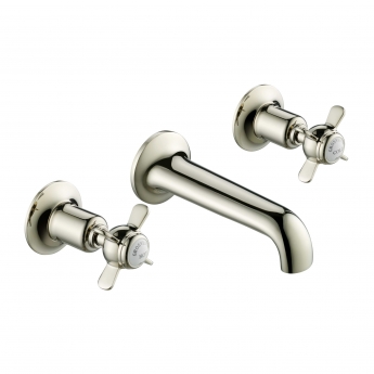 JTP Grosvenor 3-Hole Wall Mounted Basin Mixer Tap Pinch Handle - Nickel