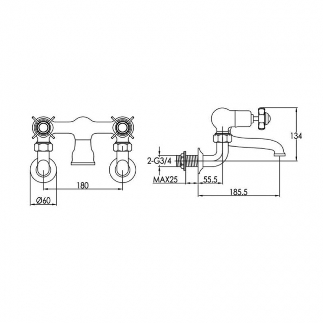 JTP Grosvenor Bath Filler Tap Pinch Handle Wall Mounted - Nickel JTP Grosvenor Bath Filler Tap Pinch Handle Wall Mounted - Nickel