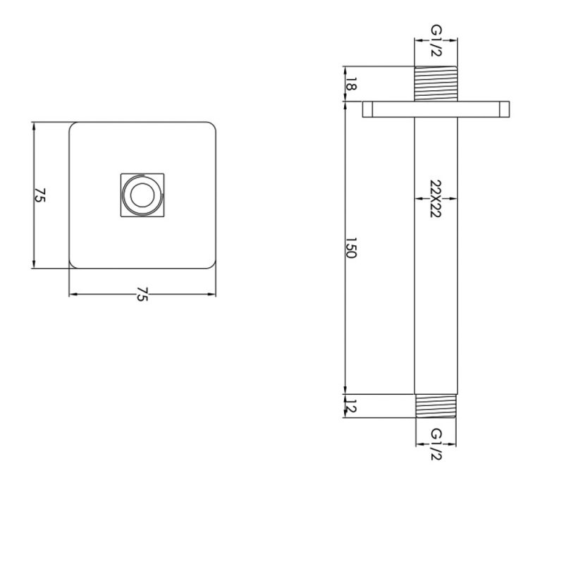 JTP HIX Ceiling Mounted Shower Arm 150mm Length - Brushed Brass | Product Image JTP HIX Ceiling Mounted Shower Arm 150mm Length - Brushed Brass