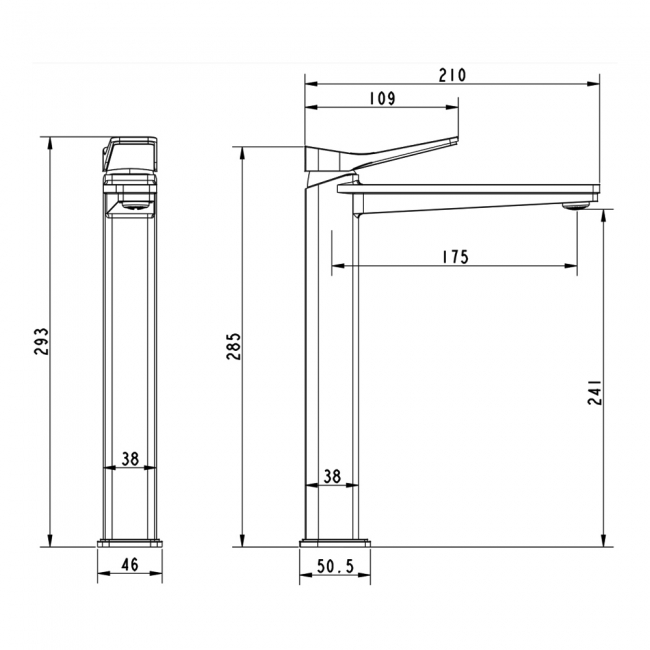 JTP HIX Tall Basin Mixer Tap - Brushed Black