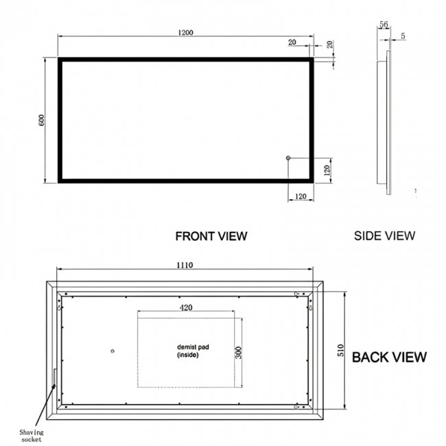 • These mirrors are fitted with a heated pad that helps to clear condensation from the central area