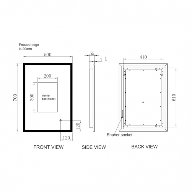 • These mirrors are fitted with a heated pad that helps to clear condensation from the central area