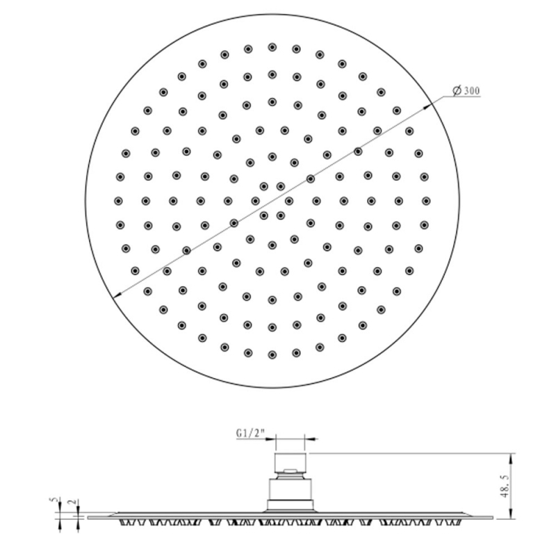 JTP Inox Glide Extra Slim Round Fixed Shower Head 300mm Diameter - Matt Stainless Steel