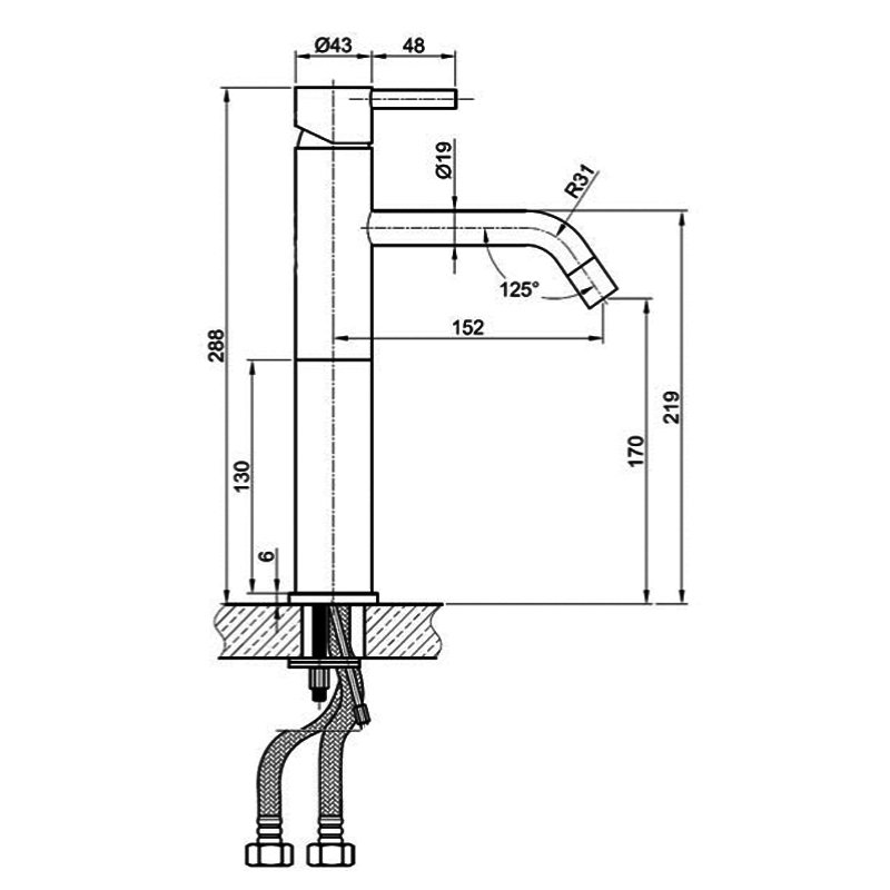 JTP Inox Tall Basin Mixer Tap - Matt Stainless Steel