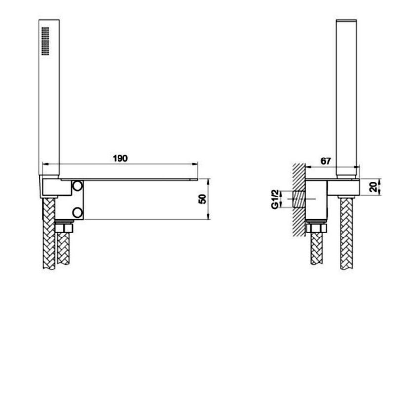 • Round water outlet and holder with side shelf, metal hose and slim handshower, side fixing