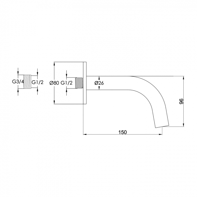JTP Vos Wall Mounted Bath / Basin Spout 150mm - Brushed Brass