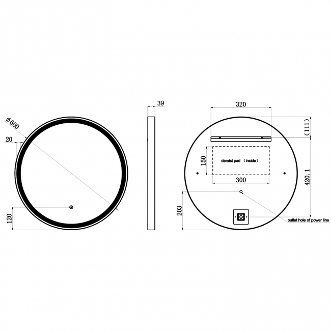 JTP Vos Bathroom Mirror 600mm Diameter With Light - Brushed Bronze | Product Image JTP Vos Bathroom Mirror 600mm Diameter With Light - Brushed Bronze