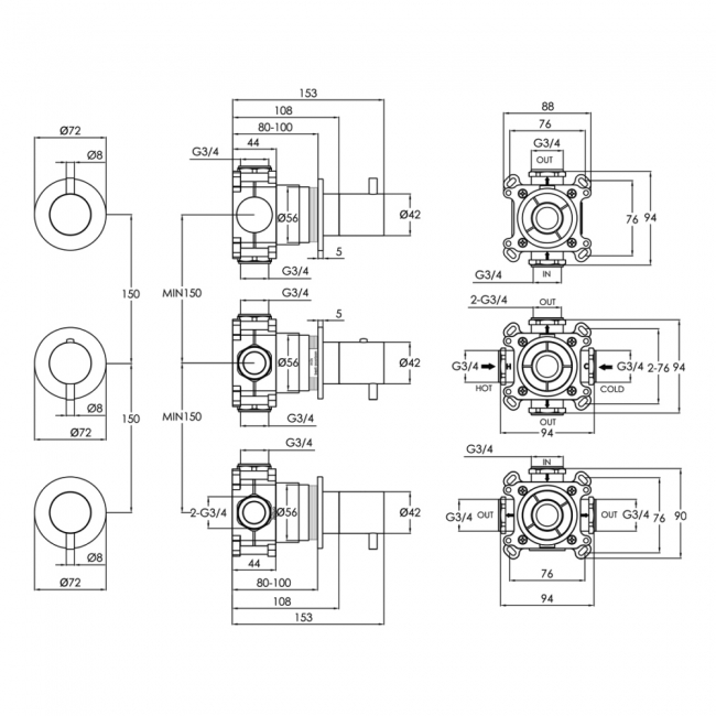 • Choose our range of Shower Kit, Fixed Head and Body jets to use with three outlet shower valve (See the You May Need)