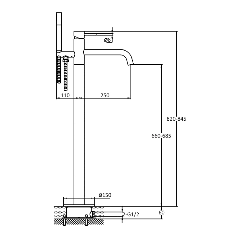 Tap Base to Spout660-685mm