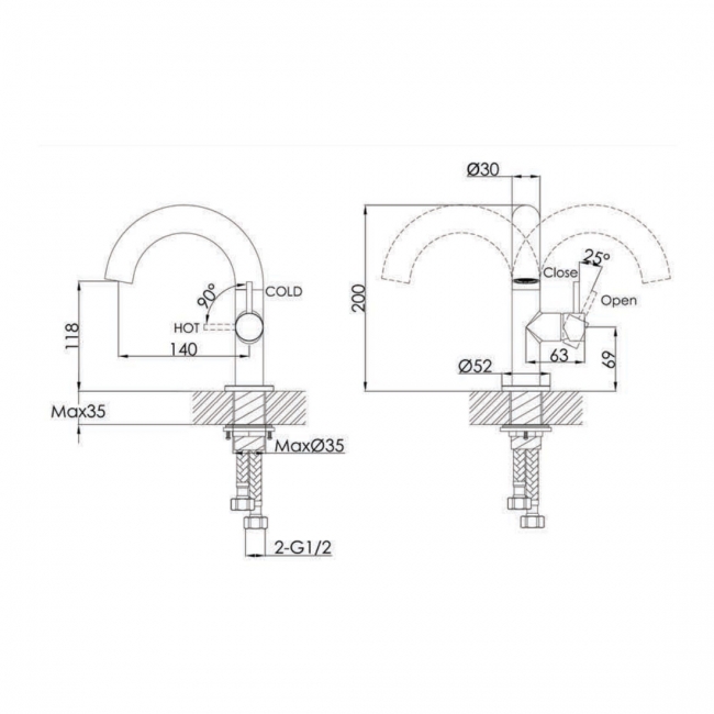 Tap Base to Spout118mm