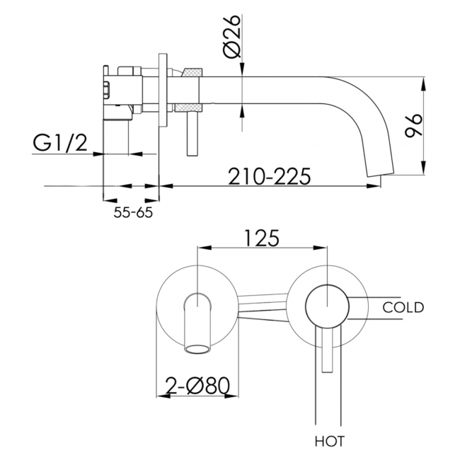 JTP Vos 2-Hole Wall Mounted Basin Mixer Tap - Matt Black