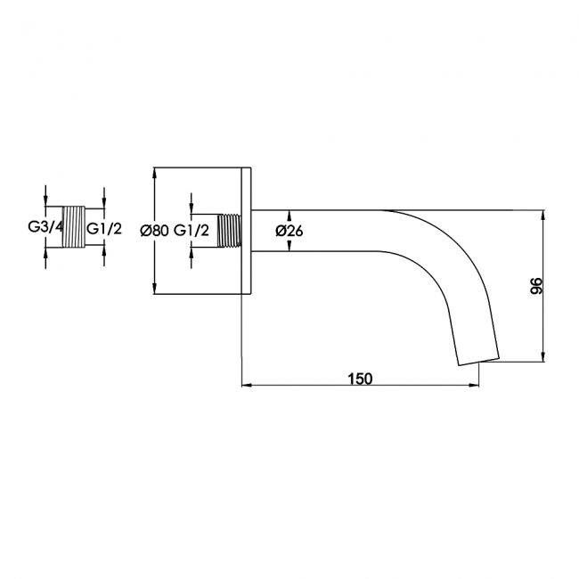JTP Vos Wall Mounted Bath / Basin Spout 150mm - Brushed Bronze | Product Image JTP Vos Wall Mounted Bath / Basin Spout 150mm - Brushed Bronze