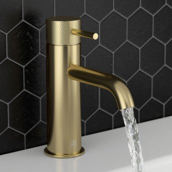 Add a touch of luxury to your bathroom with the JTP Vos Basin Mixer Tap with Designer Handle in Brushed Brass.