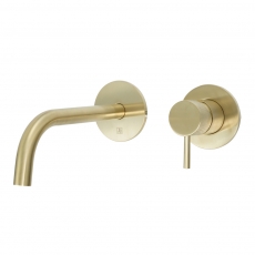 JTP Vos 2-Hole Wall Mounted Basin Mixer Tap with 150mm Slim Spout with Designer Handle - Brushed Brass | Product Image JTP Vos 2-Hole Wall Mounted Basin Mixer Tap with 150mm Slim Spout with Designer Handle - Brushed Brass | Product Image JTP Vos 2-Hole Wall Mounted Basin Mixer Tap with 150mm Slim Spout with Designer Handle - Brushed Brass