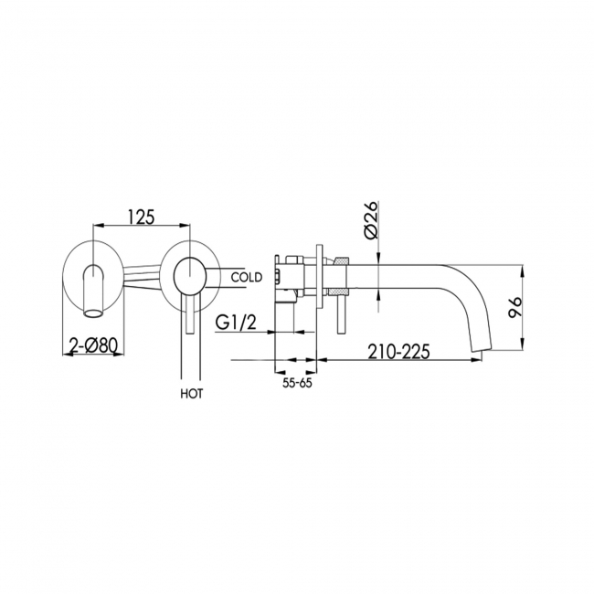 JTP Vos 2-Hole Wall Mounted Basin Mixer Tap with Designer Handle - Brushed Brass | Thumbnail Image JTP Vos 2-Hole Wall Mounted Basin Mixer Tap with Designer Handle - Brushed Brass