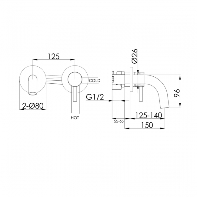 JTP Vos 2-Hole Wall Mounted Basin Mixer Tap with Designer Handle 150mm Spout Reach - Brushed Brass | Product Image JTP Vos 2-Hole Wall Mounted Basin Mixer Tap with Designer Handle 150mm Spout Reach - Brushed Brass