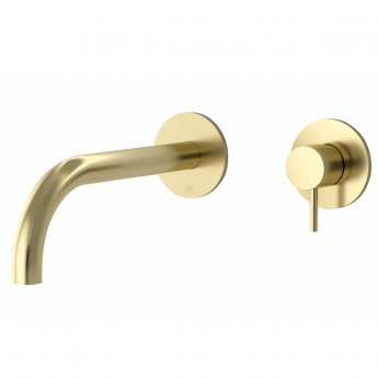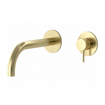 JTP Vos 2-Hole Wall Mounted Basin Mixer Tap with Designer Handle 150mm Spout Reach - Brushed Brass | Thumbnail Image JTP Vos 2-Hole Wall Mounted Basin Mixer Tap with Designer Handle 150mm Spout Reach - Brushed Brass