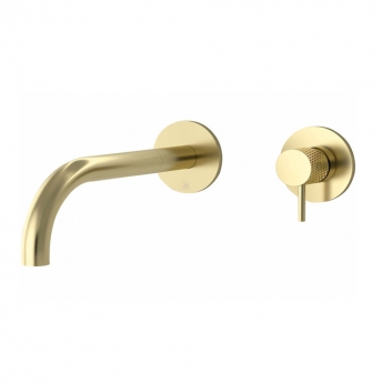 JTP Vos 2-Hole Wall Mounted Basin Mixer Tap with Designer Handle 150mm Spout Reach - Brushed Brass