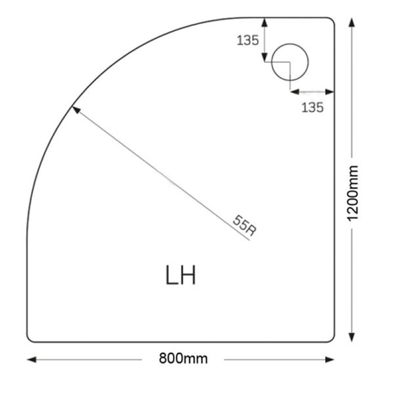 Just Trays JT Fusion Offset Quadrant Anti-Slip Shower Tray with Waste 1200mm x 800mm LH Flat Top