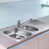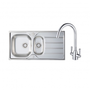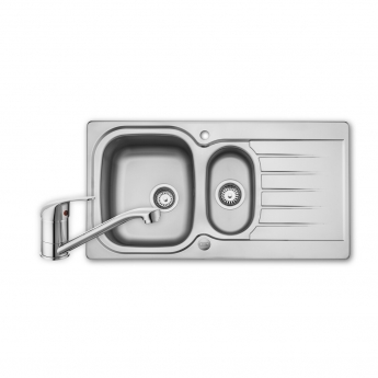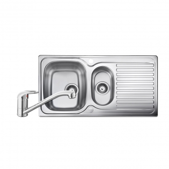 Prima 1.5 Bowl Kitchen Sink with Sink Tap and Waste Kit 965mm L x 500mm W - Stainless Steel