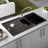 Prima+ Granite 1.5 Bowl inset Kitchen Sink With Swan Neck Mixer Tap 1000mm L x 500mm W - Black