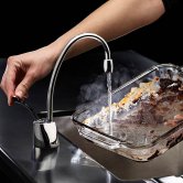 No longer purely the preserve of professional kitchens, the instant hot water tap allows you to ditch the kettle and have access to instant hot water any time at the touch of a button. Whether you're making a cup of tea or washing up the pots and pans, wouldn't it be convenient to have instant hot water? Using a tank concealed under your kitchen units. The hot water tap itself is just as stylish and modern looking as any other type of tap, and can also be retro-fitted to many types of sinks.