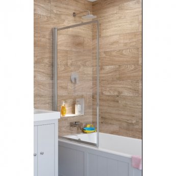 Signature Classic Single Panel Silver Framed Hinged Bath Screen 1400mm H x 760mm W - 4mm Glass