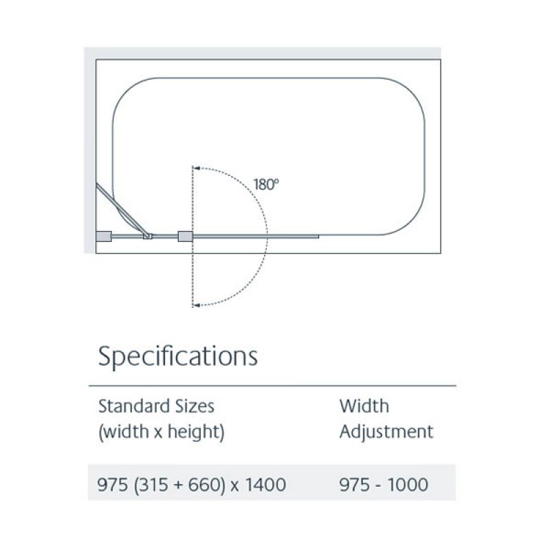 Signature Classic Double Panel Curved Hinged Bath Screen 1400mm H x 975mm W -6mm Glass