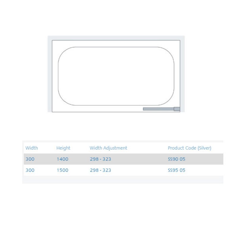 Signature Contract Shower Curtain Panel Bath Screen 1400mm H x 300mm W - Silver | Thumbnail Image Signature Contract Shower Curtain Panel Bath Screen 1400mm H x 300mm W - Silver