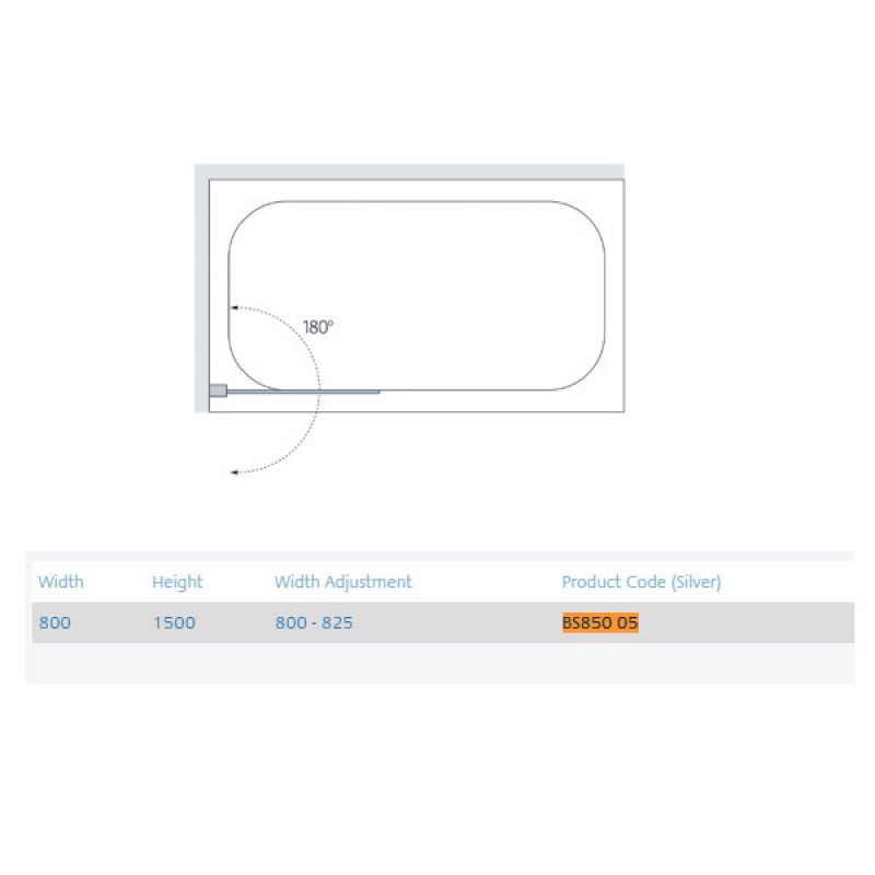 Signature Classic Single Panel Square Hinged Bath Screen 1500mm H x 800mm W - 8mm Glass | Product Image Signature Classic Single Panel Square Hinged Bath Screen 1500mm H x 800mm W - 8mm Glass