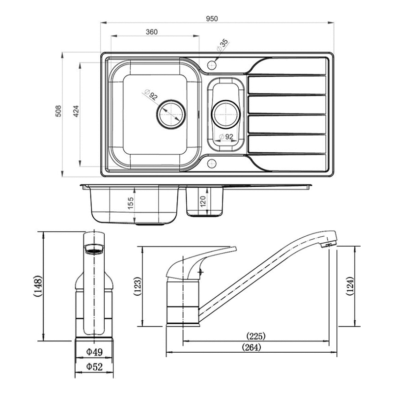 Leisure Albion 1.5 Bowl Stainless Steel Kitchen Sink with Aquamono Tap & Waste Kit 950mm L x 508mm W - Satin | Thumbnail Image Leisure Albion 1.5 Bowl Stainless Steel Kitchen Sink with Aquamono Tap & Waste Kit 950mm L x 508mm W - Satin | Thumbnail Image Leisure Albion 1.5 Bowl Stainless Steel Kitchen Sink with Aquamono Tap & Waste Kit 950mm L x 508mm W - Satin