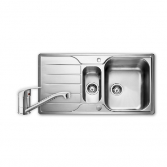 Leisure Albion 1.5 Bowl Stainless Steel Kitchen Sink with Aquamono Tap & Waste Kit 950mm L x 508mm W - Satin