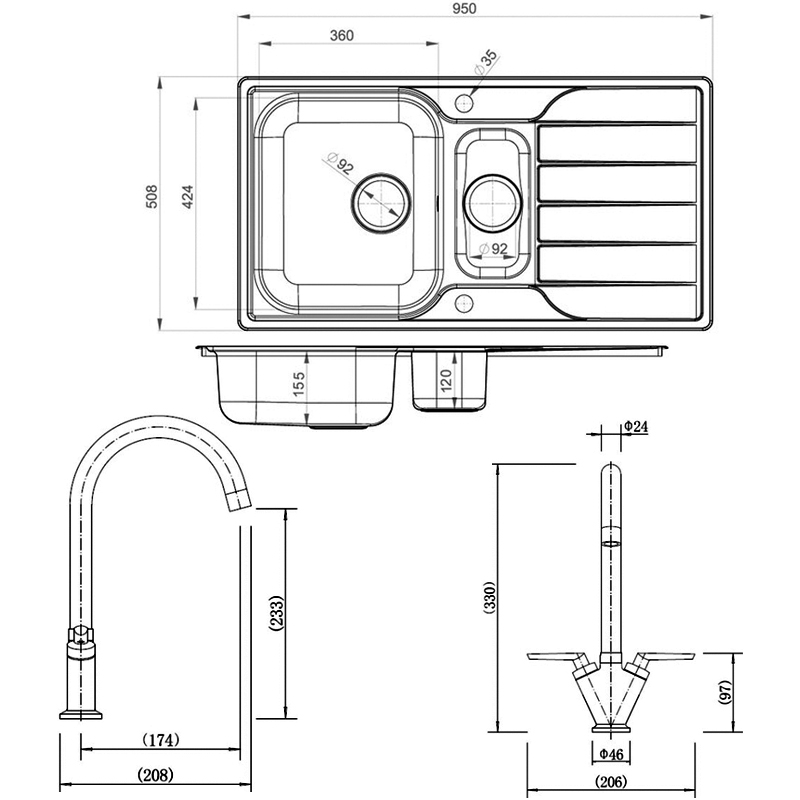 • Comes complete with tap and waste kit (Basket strainer waste and overflow included)