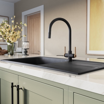 Leisure Aquaspirit 1933 Pull-Out Dual Lever Kitchen Sink Mixer Tap - Matt Black | Thumbnail Image Leisure Aquaspirit 1933 Pull-Out Dual Lever Kitchen Sink Mixer Tap - Matt Black | Thumbnail Image Leisure Aquaspirit 1933 Pull-Out Dual Lever Kitchen Sink Mixer Tap - Matt Black | Thumbnail Image Leisure Aquaspirit 1933 Pull-Out Dual Lever Kitchen Sink Mixer Tap - Matt Black