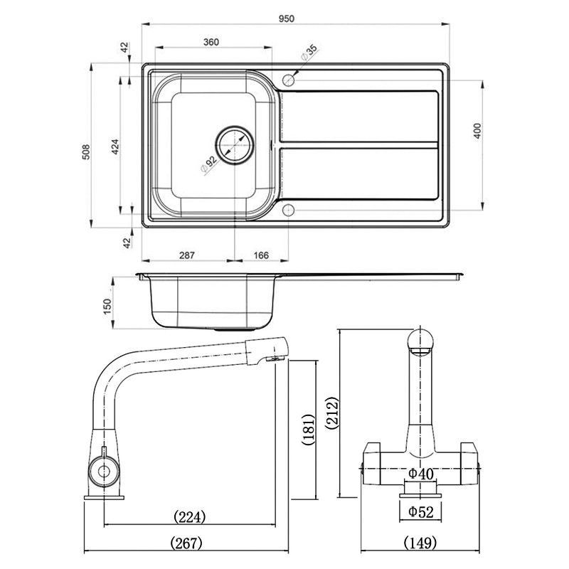 • Comes complete with tap and waste kit (Basket strainer waste and overflow included)