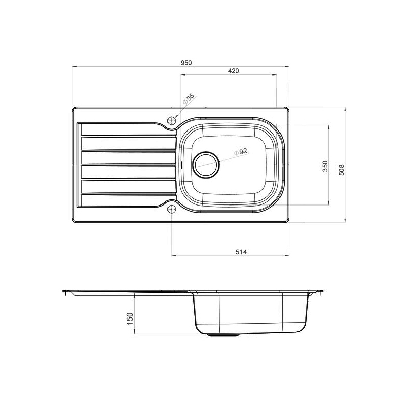 Leisure Eaton 1.0 Bowl Stainless Steel Kitchen Sink with Waste Kit 950mm L x 508mm W - Satin | Thumbnail Image Leisure Eaton 1.0 Bowl Stainless Steel Kitchen Sink with Waste Kit 950mm L x 508mm W - Satin