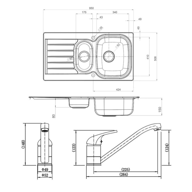 • Comes complete with tap and waste kit (Basket strainer waste and overflow included)