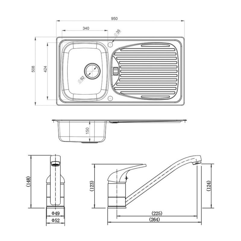 • Comes complete with tap and waste kit (Basket strainer waste and overflow included)