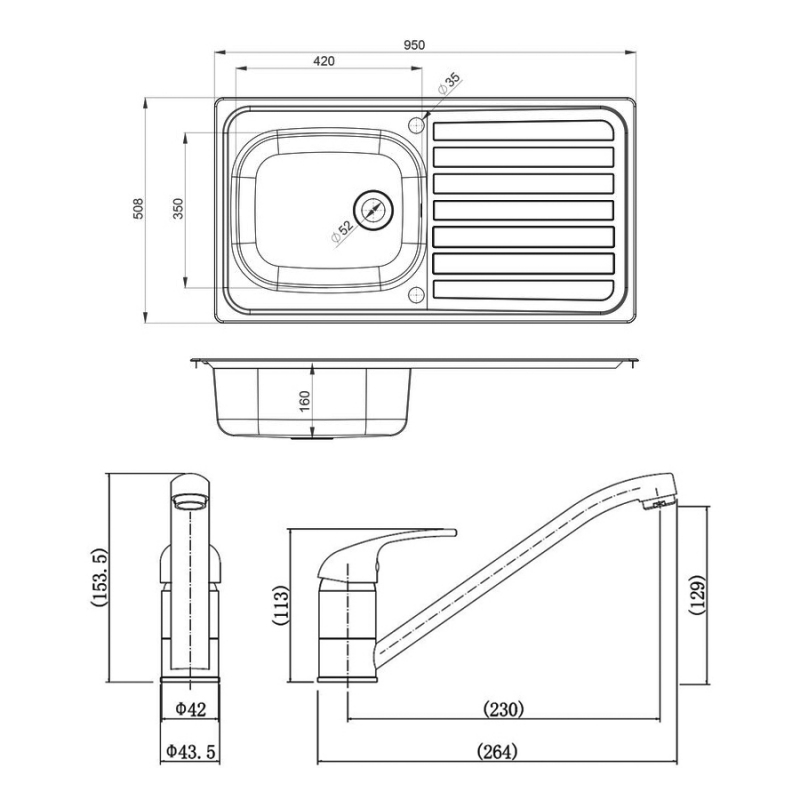 Leisure Lexin 1.0 Bowl Stainless Steel Kitchen Sink with Aquamono 35 Tap & Waste Kit 950mm L x 508mm W 0.6 Gauge Steel - Satin | Product Image Leisure Lexin 1.0 Bowl Stainless Steel Kitchen Sink with Aquamono 35 Tap & Waste Kit 950mm L x 508mm W 0.6 Gauge Steel - Satin