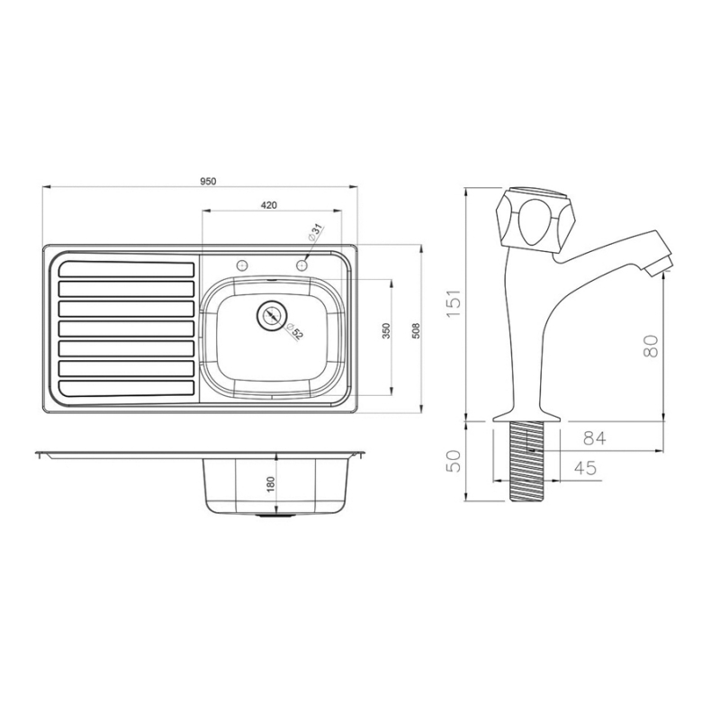 Leisure Lexin 1.0 Bowl Stainless Steel Kitchen Sink with LH Drainer Pillar Tap & Waste Kit 950mm L x 508mm W 2TH - Satin | Thumbnail Image Leisure Lexin 1.0 Bowl Stainless Steel Kitchen Sink with LH Drainer Pillar Tap & Waste Kit 950mm L x 508mm W 2TH - Satin | Thumbnail Image Leisure Lexin 1.0 Bowl Stainless Steel Kitchen Sink with LH Drainer Pillar Tap & Waste Kit 950mm L x 508mm W 2TH - Satin