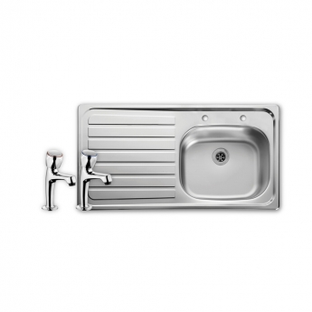 Leisure Lexin 1.0 Bowl Stainless Steel Kitchen Sink with LH Drainer Pillar Tap & Waste Kit 950mm L x 508mm W 2TH - Satin