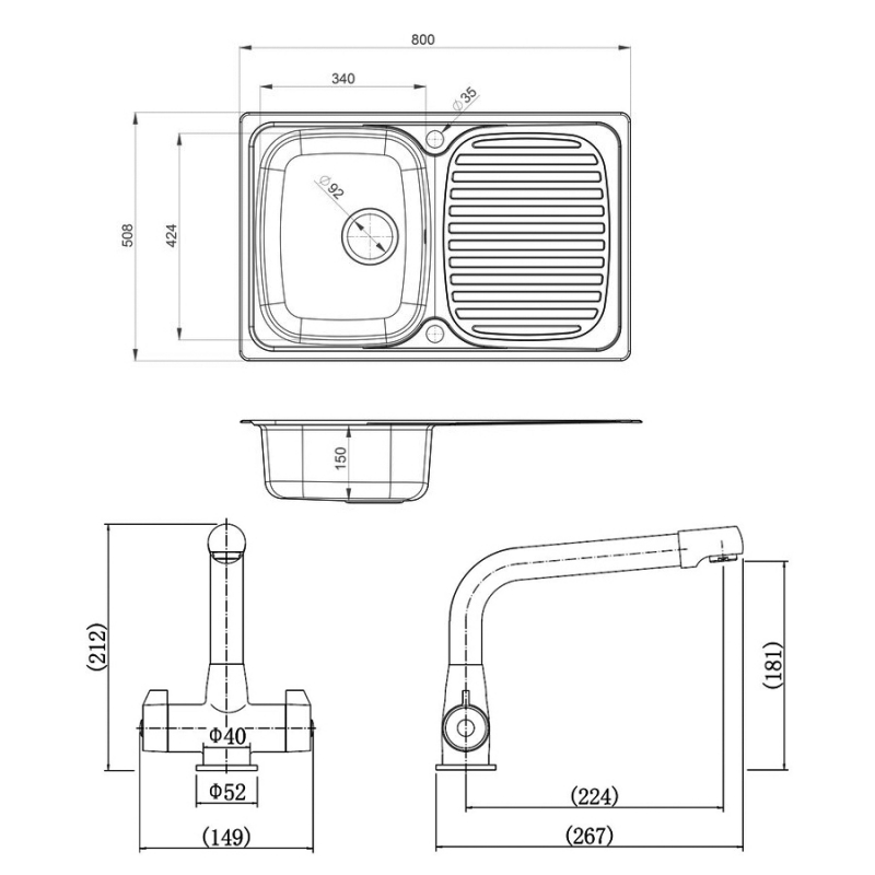 • Comes complete with tap and waste kit (Basket strainer waste and overflow included)