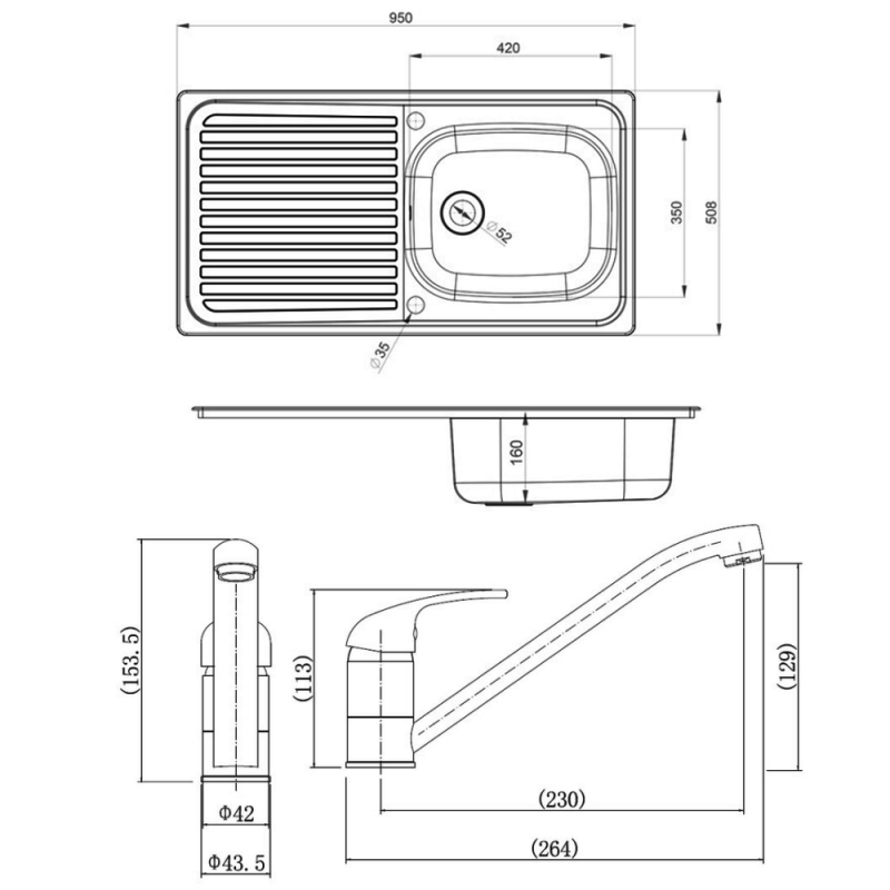 Leisure Linear 1.0 Bowl Stainless Steel Kitchen Sink with Aquamono 35 Tap & Waste Kit 950mm L x 508mm W - Satin | Thumbnail Image Leisure Linear 1.0 Bowl Stainless Steel Kitchen Sink with Aquamono 35 Tap & Waste Kit 950mm L x 508mm W - Satin | Thumbnail Image Leisure Linear 1.0 Bowl Stainless Steel Kitchen Sink with Aquamono 35 Tap & Waste Kit 950mm L x 508mm W - Satin | Thumbnail Image Leisure Linear 1.0 Bowl Stainless Steel Kitchen Sink with Aquamono 35 Tap & Waste Kit 950mm L x 508mm W - Satin