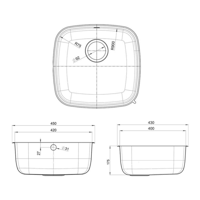 Leisure Linear 1.0 Bowl Stainless Steel Undermount Kitchen Sink with Waste Kit 450mm L x 430mm W - Satin | Thumbnail Image Leisure Linear 1.0 Bowl Stainless Steel Undermount Kitchen Sink with Waste Kit 450mm L x 430mm W - Satin
