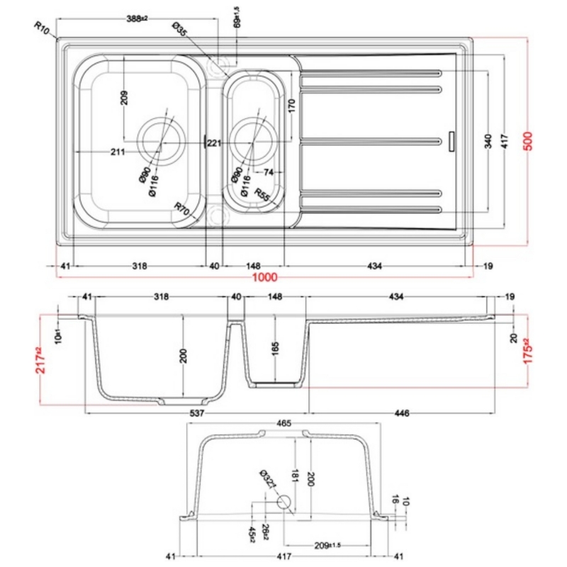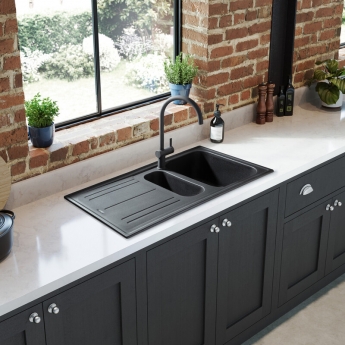 Leisure Nova 1.5 Bowl Kitchen Sink with Waste Kit 1000mm L x 500mm W - Black | Thumbnail Image Leisure Nova 1.5 Bowl Kitchen Sink with Waste Kit 1000mm L x 500mm W - Black | Thumbnail Image Leisure Nova 1.5 Bowl Kitchen Sink with Waste Kit 1000mm L x 500mm W - Black