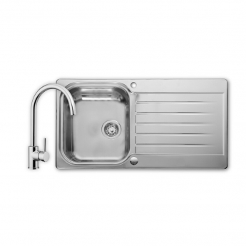 Leisure Seattle 1.0 Bowl Stainless Steel Kitchen Sink with Aquaswan Single Tap & Waste Kit 950mm L x 508mm W - Polished